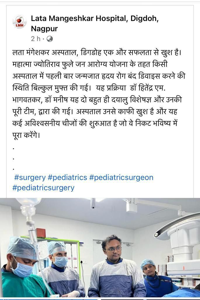 Head of Cardiology Lata Mangeshkar Hospital,Burdi.
